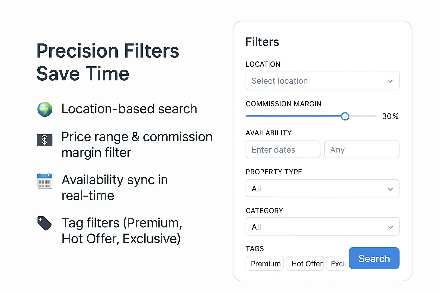 🏷 Tag filters (Premium, Hot Offer, Exclusive)
