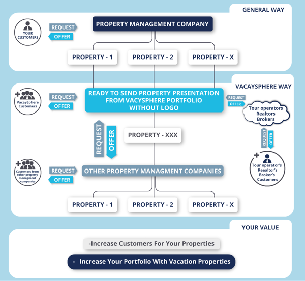Book more properties from a shared pool or your own listings.