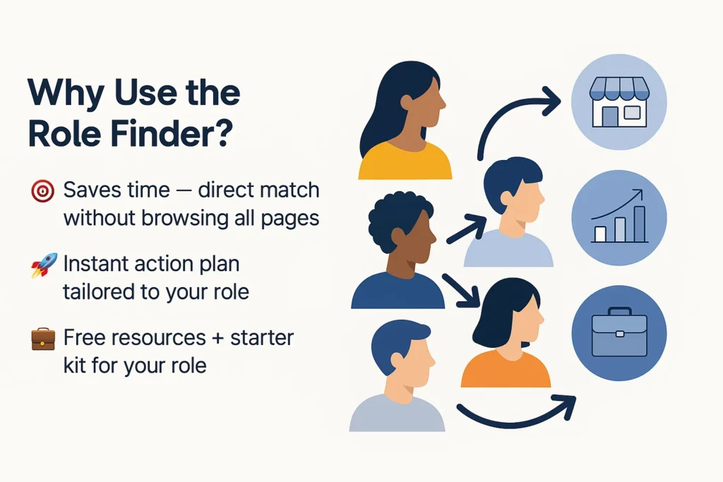 Answer a few quick questions and discover the role that best matches your skills, resources, and goals.